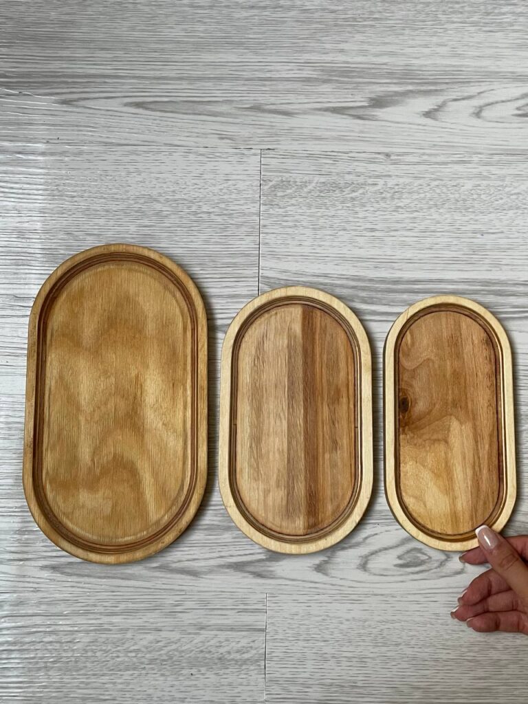 3 مجموعه 5 عددی سینی چوبی دایره مربع مستطیل ( 15 تیکه )