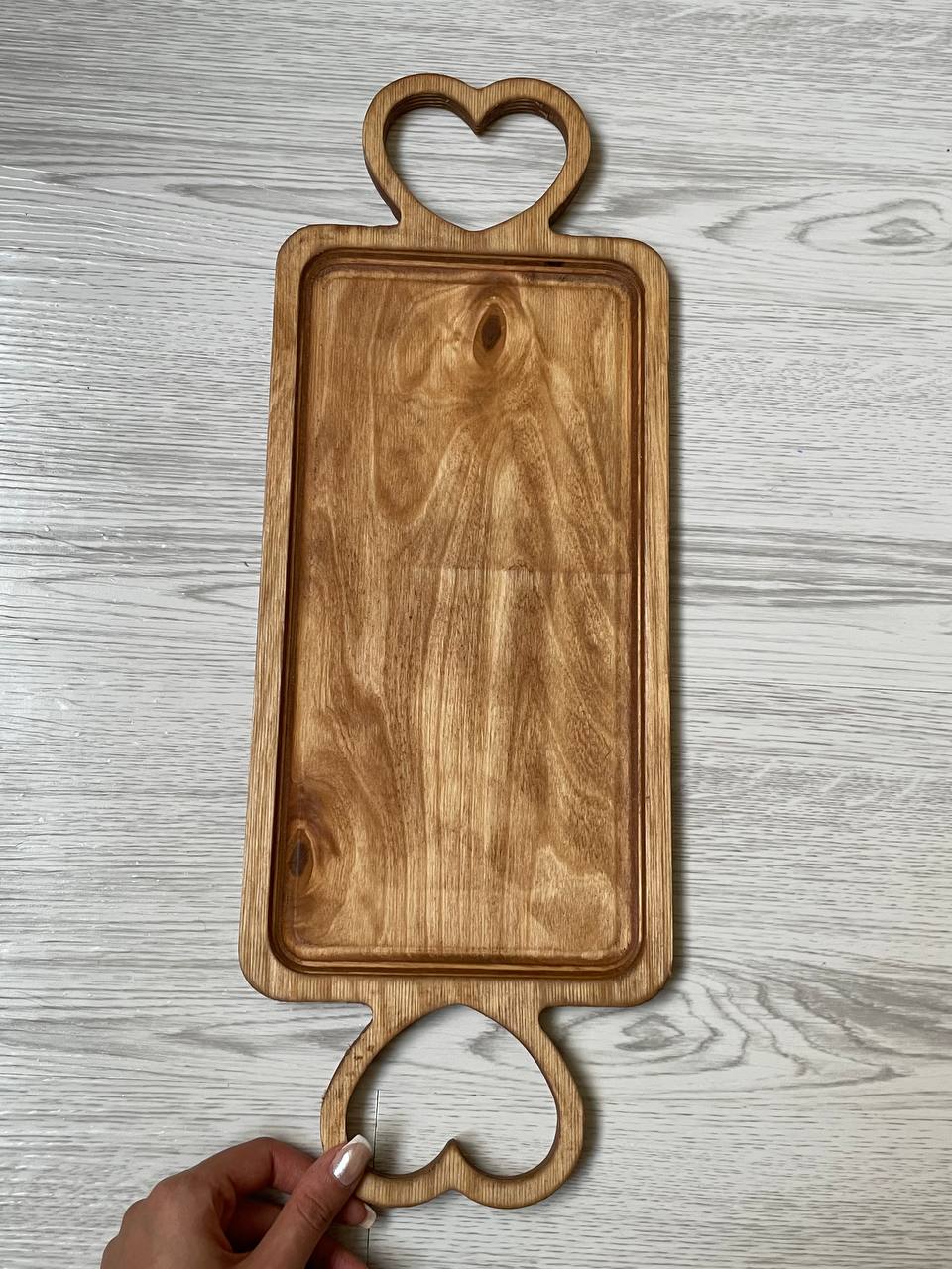 این سینی، با طراحی قلب شکل، به ایجاد یک ظاهر جذاب و خاص کمک می‌کند. این سینی به دلیل داشتن شکل قلبی، به یک عنصر متفاوت و چشم‌نواز در استایل سرو چوبی تبدیل می‌شود.