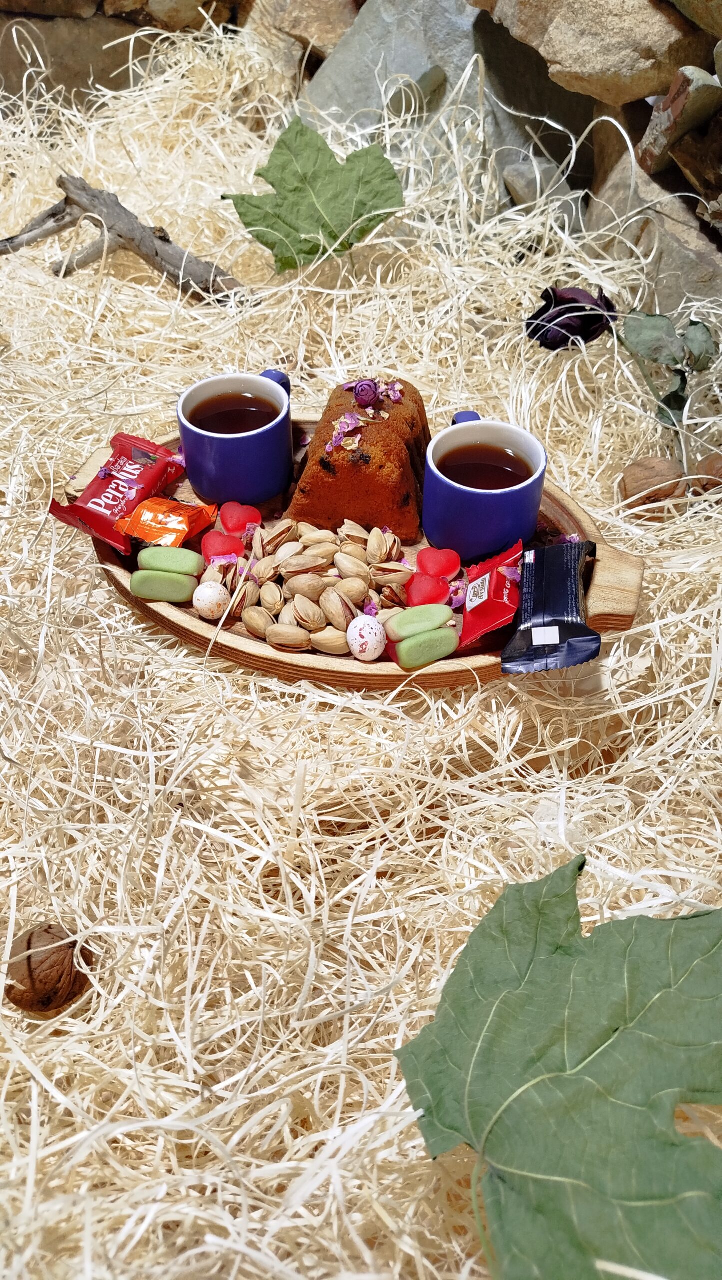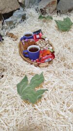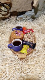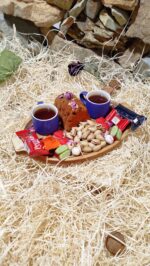 سینی سرو چوبی بیضی دسته دار کد 052 + اردو خوری چوبی طرح گربه 047 + سینی سرو چوبی بیضی کوچک کد 071