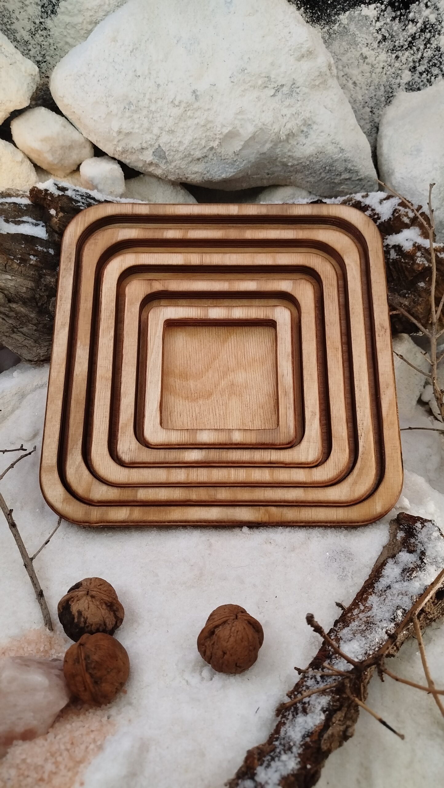 3 مجموعه 5 عددی سینی چوبی دایره مربع مستطیل ( 15 تیکه )