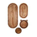 مجموعه 4 عددی سینی و اردو خوری و زیرلیوانی چوبی بیضی دایره :