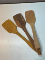 کفگیر چوبی دست‌ ساز بزرگ 809 + ملاقه چوبی دسته خراطی 805 + گوشت کوب چوبی خراطی 812